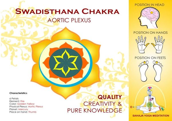 দ্বিতীয় চক্র সৃজনশীলতা, বিশুদ্ধ মনোযোগ এবং বিশুদ্ধ জ্ঞানের চক্র। এটি এমন একটি যা আমাদের অনুপ্রেরণার অভ্যন্তরীণ উত্সের সাথে সংযুক্ত করে এবং আমাদের চারপাশের সৌন্দর্য অনুভব করতে সক্ষম করে। এই চক্র দ্বারা প্রদত্ত বিশুদ্ধ জ্ঞান মানসিক নয়, তবে এটি বাস্তবতার প্রত্যক্ষ উপলব্ধি, যা আমাদের হাতের তালুতে অনুভব করা যায় এবং আমাদের সূক্ষ্ম বাধাগুলি নির্দেশ করে। এছাড়াও এটি বিশুদ্ধ, অবিচলিত মনোযোগ এবং একাগ্রতার শক্তির কেন্দ্র। শারীরিক স্তরে এটি আমাদের লিভার, কিডনি এবং তলপেটের দেখাশোনা করে। যখন আমরা খুব বেশি চিন্তা করি, এই কেন্দ্রের শক্তি নষ্ট হয়ে যায় এবং এই চক্রটি সম্পূর্ণ ভারসাম্যের বাইরে চলে গেলে ডায়াবেটিস বা ব্লাড ক্যান্সারের মতো রোগ হতে পারে।